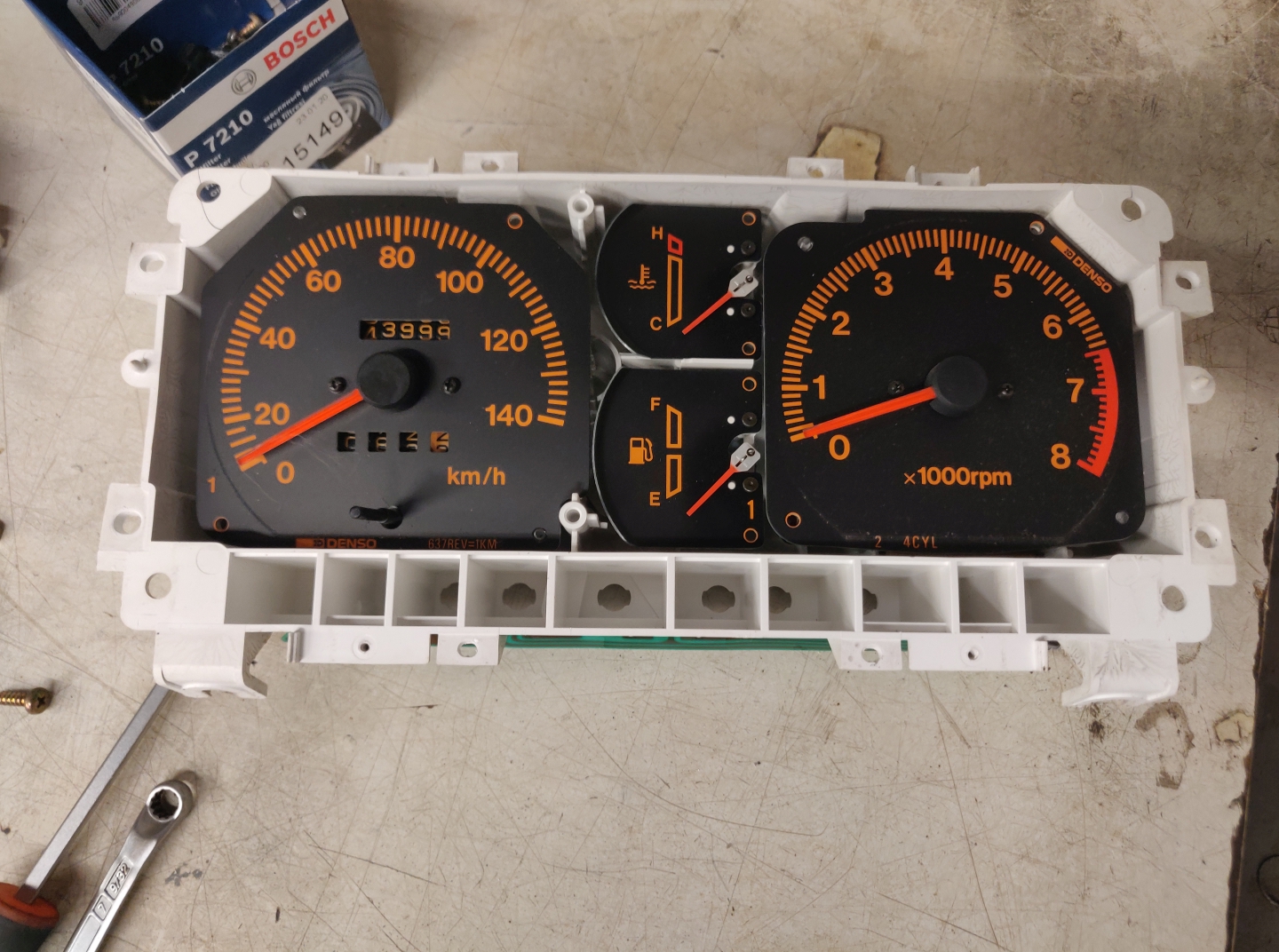Mittaristossa oli pari lamppua pimeänä ja muutenkin piti avata purkki, että sai nopeusmittarin pulssianturin siirrretyä Swiftin mittarista.