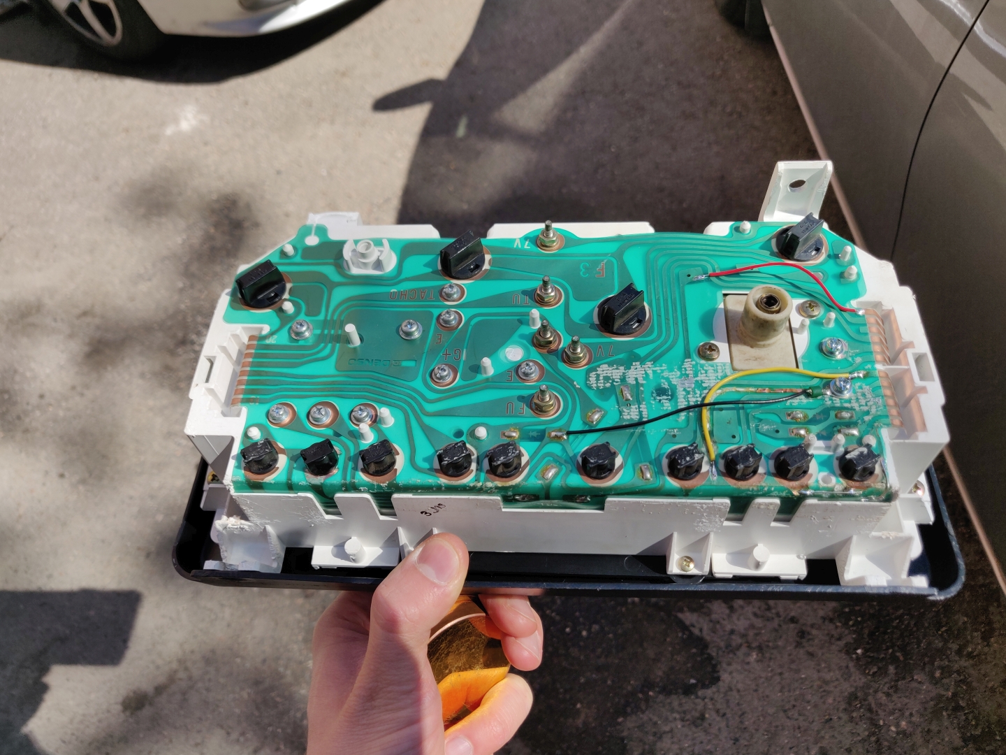 Mittaristossa oli pari lamppua pimeänä ja muutenkin piti avata purkki, että sai nopeusmittarin pulssianturin siirrretyä Swiftin mittarista.